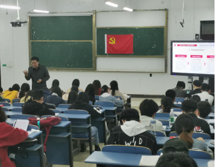 本次党课授课教师为学工处副处长高其文副教授。高其文首先介绍了本次党课的主题《奋斗百年路,启航新征程》,带领同学们了解了百年党史的几个历史时期,介绍了百年党史的十三个主要领导人。接着向同学们讲解了百年党史的道路探索,分别讲述了新民主主义革命道路、社会主义革命道路和中国特色社会主义道路。同时,高其文还从救国大业、兴国大业、富强大业和强国大业这四个历史伟业,启示同学们以史为鉴,努力奋斗,开启新征程。课上同学们听得聚精会神并认真撰写笔记,课堂氛围良好。