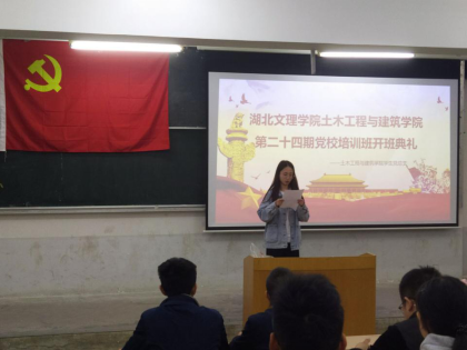 本次培训班在慷慨激昂的国歌中拉开了序幕。会议伊始,9499www威尼斯建筑系党支部书记刘潇宣读土建学院第二十四期学生入党积极分子培训班开班文件,让同学们认识到本期党校培训班的重要意义以及在学习和纪律方面的要求。紧接着,学生代表上官铭一上台发言,她认为入党机遇来之不易,要认真严肃对待党课,思想上与行动上积极向党组织靠拢。然后,由土建学院党委副书记弋兵宣布本期培训班正式开班!接着弋兵书记围绕入党流程开始讲授第一课,同学们认真听课,撰写笔记,课堂学习氛围良好。