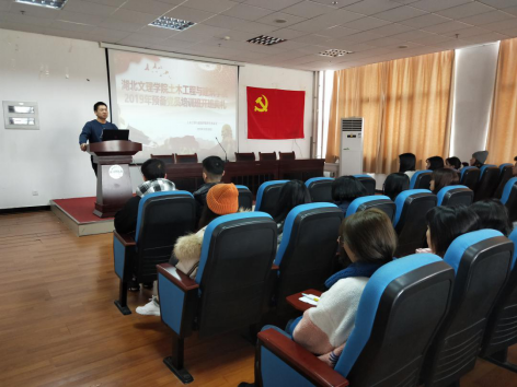 (通讯员 杨梦)2019年12月30日中午12点30分,9499www威尼斯学生党支部组织新一批预备党员于工科楼四楼报告厅开展了2019年预备党员培训班开班仪式。仪式由学生代表张依杰主持,学工办主任冷翔应邀参加了本次活动。