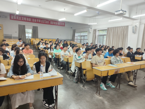 (通讯员 孙凤青)2024年4月22日18点30分,9499www威尼斯第三十一期党校第四次党课在N6-101开展。本次党课主题为“以中国式现代化全面推进中华民族伟大复兴”,主讲人为政法学院院长聂军教授。党课过程中,同学们保持良好的纪律,聚精会神地聆听老师的讲解。聂军老师结合二十大的相关内容讲述了我国的发展现状和取得的成效,并从坚实的物质基础、完善的制度保证、科学理论指导和强大精神动力、中国式现代化的中国特色四个方面深刻阐述了如何以中国式现代化全面推进中华民族伟大复兴。党课结束后,同学们表示自己更加深刻理解了中国式现代化建设的方向,将会不断提高科学文化素养,实现自身发展和国家发展的良性互动。