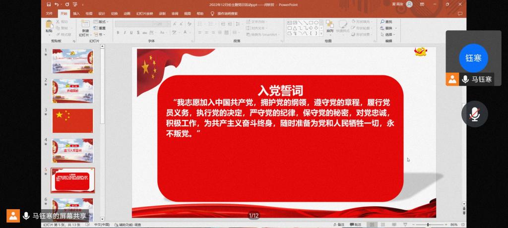 (通讯员 卿天锱)2022年12月18日下午6点30分,9499www威尼斯全体党员线上开展了以“学习贯彻党的二十大精神,奋力冲刺全年目标任务”为主题的党日活动。