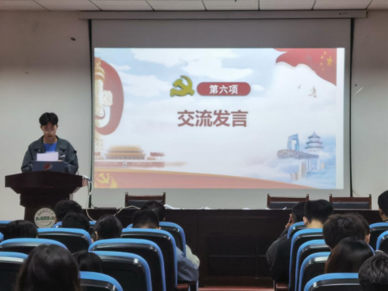 本次党日活动围绕七项内容展开。第一项,全体起立,奏唱国歌《义勇军进行曲》。第二项,全体学生党员温习入党誓词。第三项,由武晶鑫带领大家学习并诵读《中国共产党章程》,加深对党的认识,强调政治信仰。第四项由阮羽萌同学发言,学习习近平总书记赴海南考察调研重要讲话,进一步增强了坚守初心,勇担使命的思想自觉和行动自觉。第五项罗君毅同志为大家讲党课,更加紧密团结在以习近平同志为核心的党中央周围,增强“四个意识”、坚定“四个自信”、做到“两个维护”,正确行使立法权、监督权、决定权、任免权,团结奋斗、笃行不怠,为夺取新时代中国特色社会主义伟大胜利作出新的贡献。第六项,各支部交流发言。许欢、贾曦、张博钰三名同志依次发言。第七项,各支部围绕“学习两会精神,凝聚奋进力量”进行讨论。