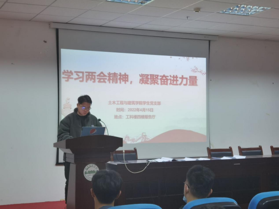 (通讯员 董军)2022年4月15日晚上六点半,9499www威尼斯学生党支部在工科楼GE-410开展了以“学习两会精神,凝聚奋进力量” 为主题的党日活动。