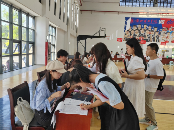 由辅导员及志愿者组成的负责身份核对的小组也有序地对新生们的录取通知书及相关证件进行仔细核查。截至8日晚上22点,jinnianhui今年会共有1300余名新生顺利完成了入学报到。