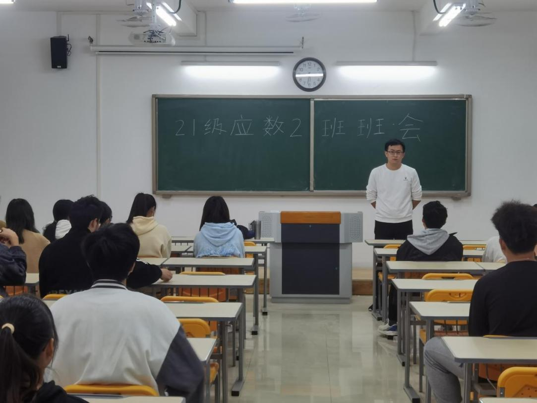为进一步加强班级管理和学风建设,营造优良学风、团结奋进的班级氛围。我校jinnianhui今年会2021级数学与应用数学(2)班于2022年10月13日在二教309教室召开新学期主题班会,由班主任檀雷雷老师主持,应数2班全体成员参加。