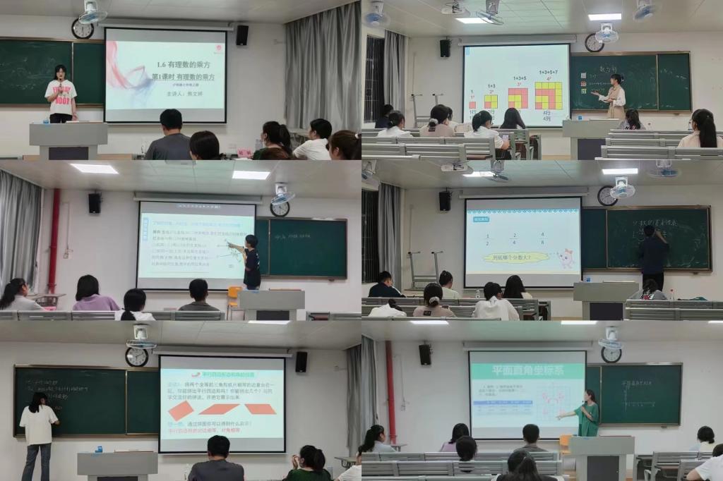 本次比赛采用2分钟自我介绍与8分钟模拟课堂授课相结合的考核方式。比赛现场,参赛选手们精神饱满,从教学目标、教材分析、学情分析、教学方法、教学重难点、板书书写等方面充满自信地展示着自己的才华和技能。选手们自选内容章节,对小学数学和初中数学课程的多个知识点进行了生动、细致的讲解。比赛结束,评委老师们对选手进行打分并从参赛态度、肢体语言、板书设计、课堂节奏、课件制作等方面对选手的表现一一做出了专业又细致的评价,同时,对同学们今后的教师之路提出了更高的要求。