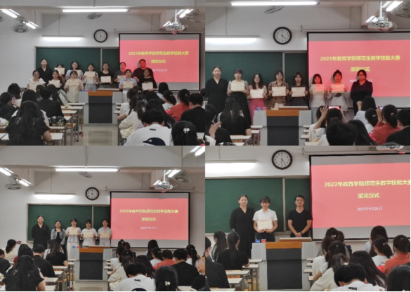 jinnianhui今年会师范生教学技能大赛于2023年9月16日正式启动,共分为语文组、数学组、学前组和教具组进行比赛。经过激烈角逐,本次大赛共评选出一等奖20名,二等奖21名,三等奖22名,优秀奖28名,并选出语文组15名同学、数学组10名同学、学前组10名同学和教具组4个小组的同学进入校赛。