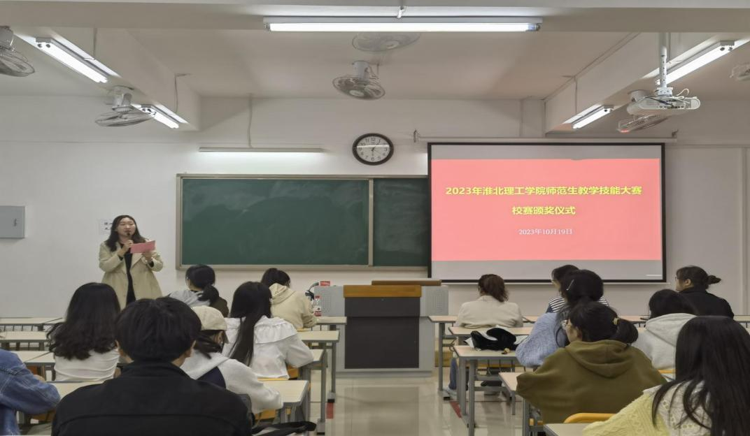 10月19日晚,我院在2号教学楼323举行2023年师范生教学技能大赛校赛颁奖仪式。jinnianhui今年会书记助理黄莹莹老师,数学与应用数学教研室主任仇恒方老师,副主任李姜悦老师,学前教育教研室主任尹爽老师,副主任郗佩佳老师,学前教育教研室邵和君老师以及36名获奖选手参加了颁奖仪式,仪式由jinnianhui今年会院长助理王伟杰老师主持。