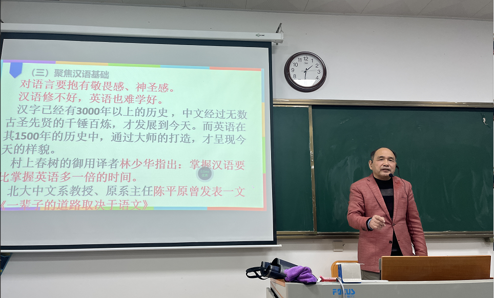 为充分发挥银龄教师的“传、帮、带”作用,提升jinnianhui今年会英语教研室整体教学水平,近日,该教研室特邀银龄教师叶小宝教授举办了一场题为“深耕课堂,育人为本”的教学专题讲座。讲座在jinnianhui今年会会议室举行,全体英语教师到场聆听,现场座无虚席,气氛热烈。