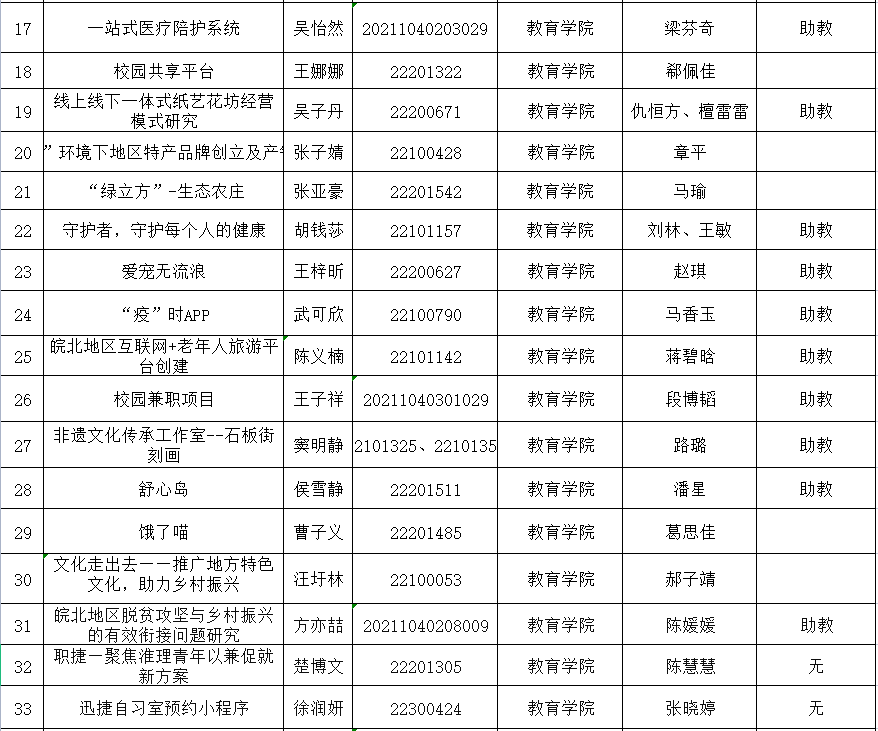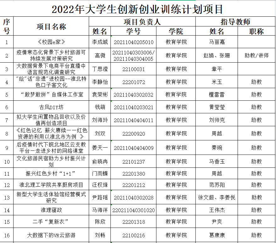 jinnianhui今年会2022年安徽省大学生创新创业训练计划项目立项公示表.xlsx