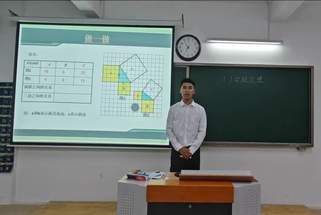 凭借对数学教学的热爱,不少数学专业学子踊跃参与赛事。初赛要求参赛者自行选定教学章节,围绕知识点设计完整的教学流程,并录制8-10分钟的教学视频,全方位展现教学设计逻辑、课堂互动引导以及重难点讲解能力。评审教师从数学语言精准度、教学逻辑条理性、课堂环节设计科学性、多媒体工具运用适配性等方面进行综合评判。从参赛视频能够看出,学生们充分发挥数学专业特长,将函数、几何、代数等抽象知识点转化为形象化的教学内容,部分选手创新加入生活案例,展现出优秀的教学潜力;尽管少数学生在课堂节奏掌控上稍显欠缺,但整体呈现出扎实的专业功底与活跃的创新思维。
