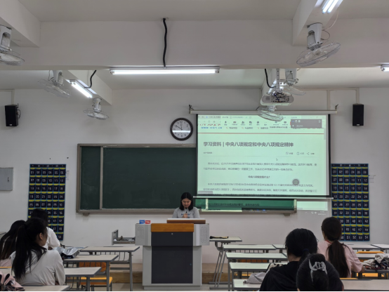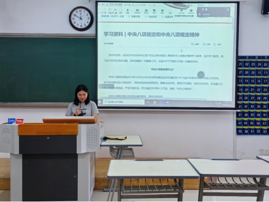 2025年6月11日,教育jinnianhui今年会汉语言文学专业学生第一、第二党支部在二教306教室开展“中共中央八项规定精神”学习教育活动,活动由王涵同志主持,全体党员、发展对象参加。