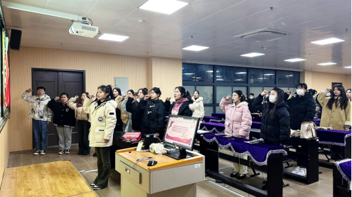 之后,由翟亚辉同志带领支部新接收的预备党员及正式党员,及其全体参会成员共同重温了入党誓词。大会在国际歌的激昂旋律中结束。