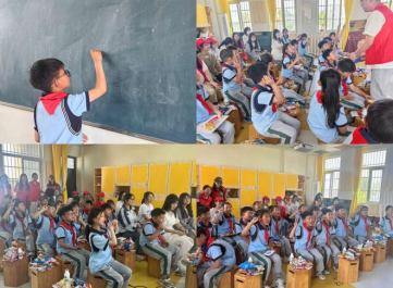 在本次志愿活动中,积极分子们为留守儿童们携带了小礼物,小朋友们看到大哥哥大姐姐的到来,心里乐开了花,志愿者们在学校老师的协助下为小朋友们分发礼物。随后组织孩子们在教室开展了“你画我猜”、“猜字”等游戏活动,孩子们乐在其中,不仅体验到了游戏的乐趣,更感受到了汉字的魅力。志愿者们通过这样的活动调动了孩子们的想象力,锻炼了表达能力,让他们在愉快的环境中学习掌握汉字,感受中华文化的博大精深。