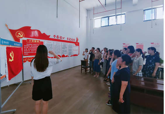 6月29日下午,学院党总支在艺术楼102党员活动室召开教职工党员大会,共同庆祝建党101周年。会上全体参会党员面对党旗举起右手重温入党誓词,新转正的教师党员彭慧敏、陈媛媛分别发言,她们表示“七一”前夕能够按期转为中共正式党员,心情无比激动,表示在今后的学习、工作中一定立足岗位、以身作则,为学校的学生管理工作做出自己的贡献。老党员代表任若晨、侯莉萍也分别在会上做了发言,她们根据自身不同的成长经历,介绍了自己是如何成长为一名合格的共产党员。在交流发言中英语教研室的褚倩、马香玉分别从教师党员如何在教学科研中做出表率进行阐述,学前教育教研室尹爽就党员教师如何在工作需要时率先垂范、积极承担工作任务做了发言。大家表示,今年是党的二十大召开之年,也是我校党委工作的开局之年,作为教职工党员一定会为学校的建设、发展出力尽责。