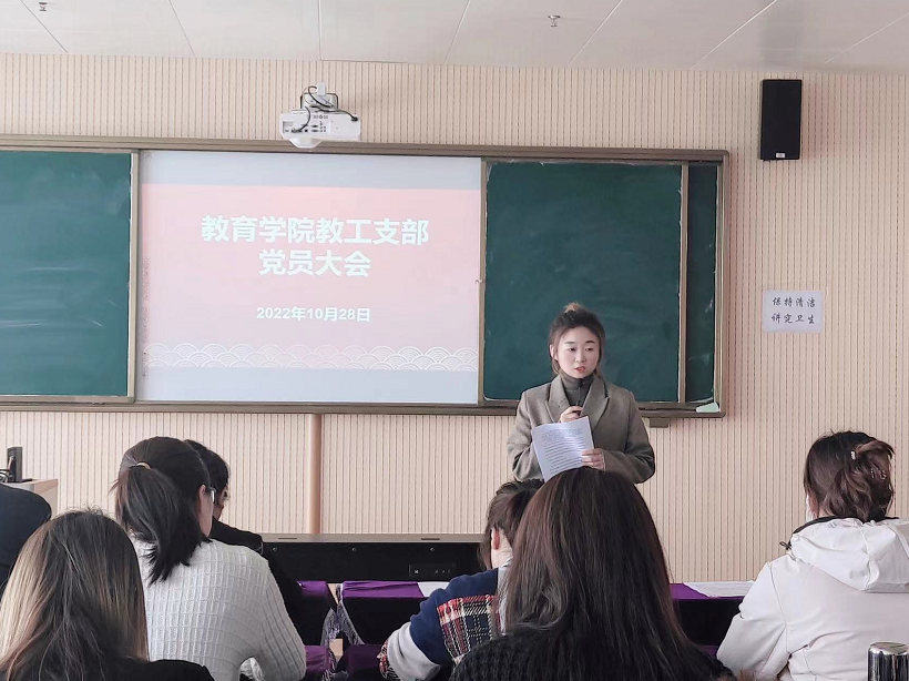 2022年10月28日,jinnianhui今年会教工支部在艺术楼301教室召开党员会议,全院教师正式党员26人、预备党员5人参加会议。会议由jinnianhui今年会党总支委员、院长助理米玉同志主持。