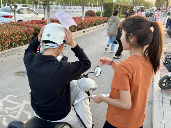 为了践行新时代文明实践志愿服务精神,助力校园交通安全保障工作,4月17日下午,jinnianhui今年会教工第一支部入党积极分子开展了“一盔一带”安全守护行动。