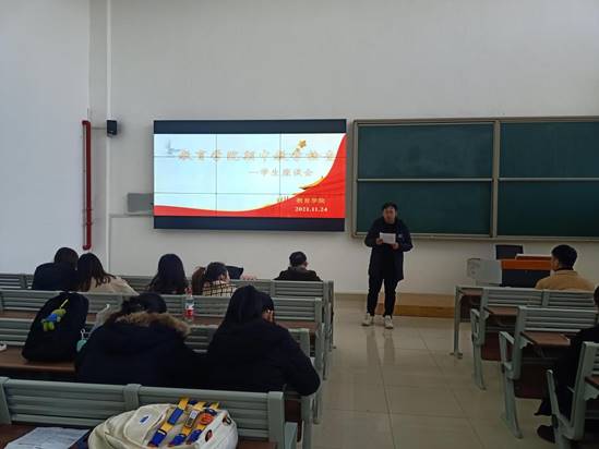 按照学校期中教学检查的要求,我院11月24日中午在一教阶梯教室举办期中教学检查学生座谈会,参加会议的有各专业各班级的学生代表以及全体辅导员老师,学院副院长孟向红主持了会议。