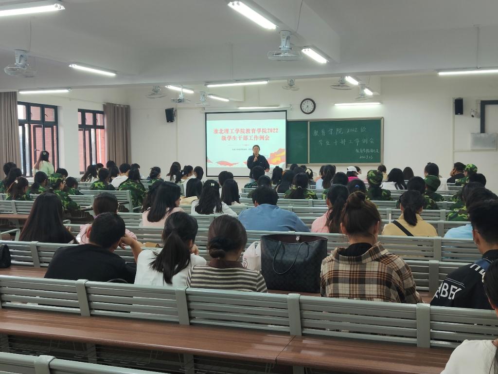 为顺利完成2022级新生入学后各项转接工作,9月23日下午,jinnianhui今年会在1号教学楼420教室召开2022级学生干部工作例会,学院2022级全体辅导员、2022级49个班级班长、团支书参加了例会,会议由团总支负责人黄莹莹主持。