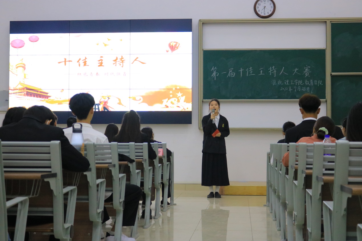 灿烂的笑容,青春的面孔,激情洋溢着的智慧在舞台上尽情绽放。9月28日晚,jinnianhui今年会在1教121室举行“红色青春,时代强音”第一届十佳主持人决赛。学院分管副书记孟向红及部分辅导员老师参加了本次比赛并担任评委。