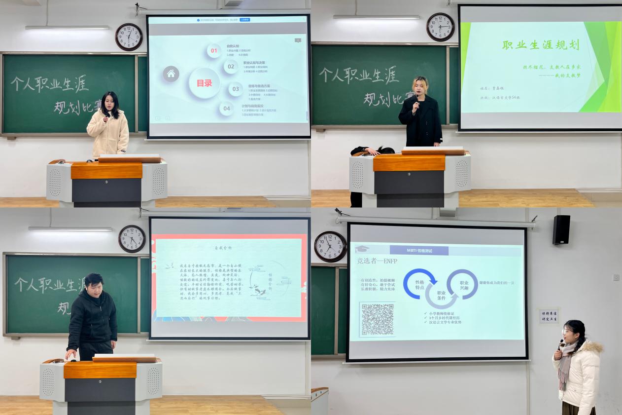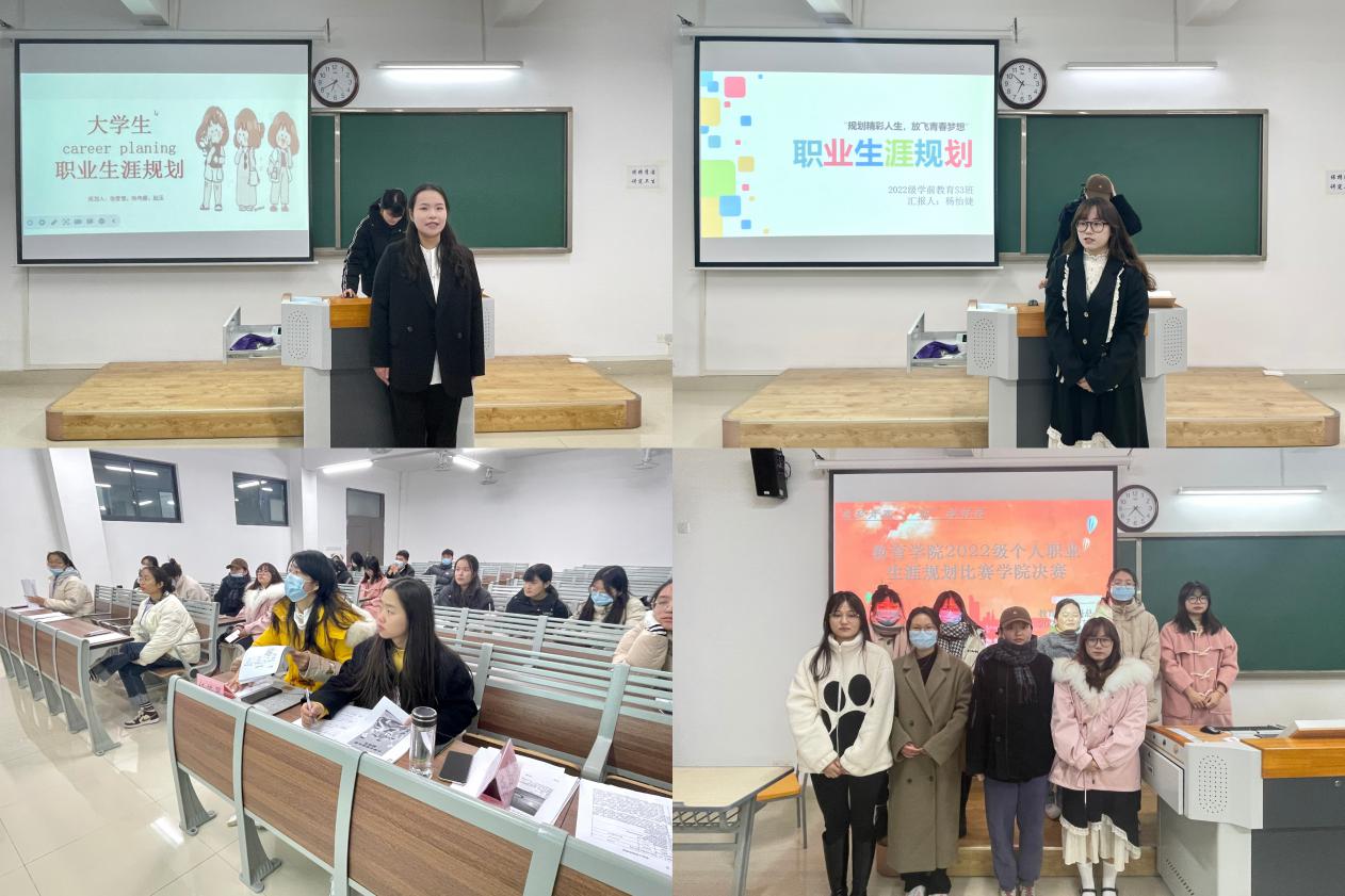为落实立德树人根本任务,发挥“以赛促学、以赛促教”的积极作用,进一步深化大学生职业生涯规划和创新创业教育,提升大学生职业生涯规划能力,为未来职业发展奠定基础。jinnianhui今年会自10月中旬以来在全体2022级专升本学生中开展了“职业生涯规划大赛”活动,活动得到了同学们的热情支持和广泛参与,参赛项目分职业规划类和创新创意类两类,经班级初赛后,最终共28个项目进入本次院级决赛。决赛于12月2日晚在1号教学楼413、414、415、416教室分组举行,各比赛小组评委由辅导员老师担任。