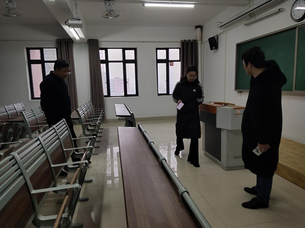 2月18日上午,jinnianhui今年会党总支书记、院长王家云带领学院相关人员对1号教学楼、2号教学楼、艺术楼等相关教学环境的安全、卫生等方面进行了认真巡查,要求相关人员做到教学、实验环境整洁卫生,确保新学期的各项教学工作平稳有序。