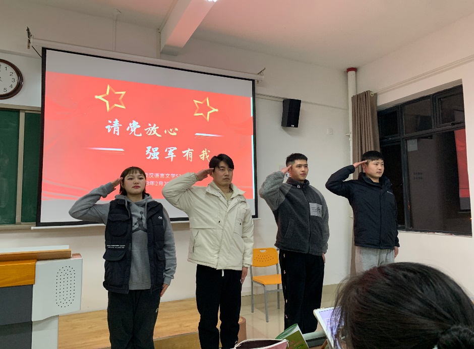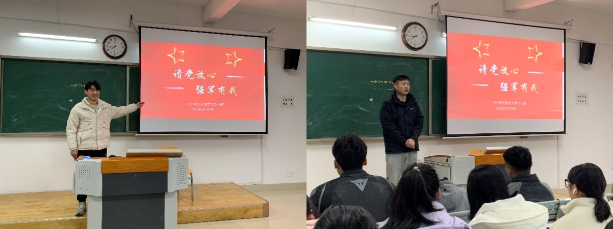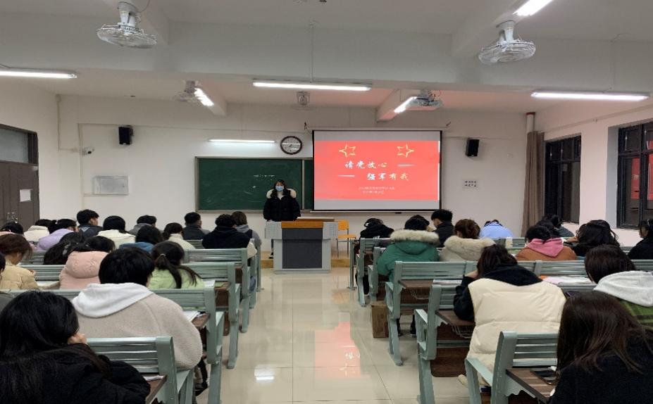 为做好在校大学生应征入伍政策宣传活动,2023年2月26日,jinnianhui今年会辅导员李应华组织2022级汉语言文学专业专升本1-6班学生开展“请党放心,强军有我——大学生征兵入伍政策宣传”主题班会。