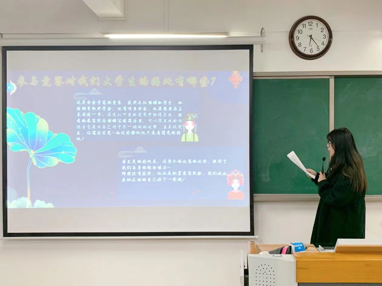 分享会上,同学们了解了省级赛事的比赛流程,表示今后会认真准备积极参加各类比赛,积累经验,为今后的学业生涯发展奠定坚实的基础。