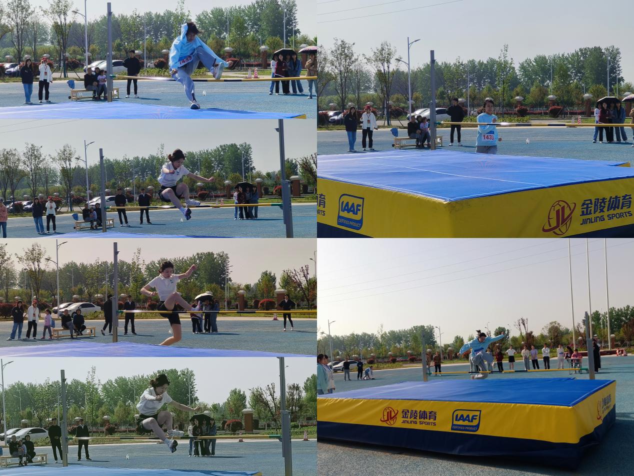 在女子跳高决赛中,学前教育专业代表队陈昕玥以124 cm的成绩获得第一名,汉语言文学专业代表队程丁晶以121cm的成绩获得第二名,数学与应用数学专业代表队王小雨以118cm的成绩获得第三名,汉语言文学专业代表队李蕊、学前教育专业代表队吴德美、学前教育专业代表队李雪三人以105cm的成绩并列第五名。