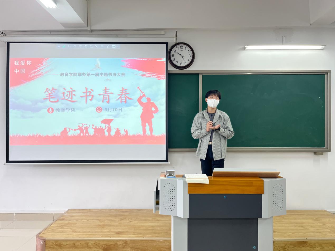比赛开始之前,郭鸿鑫老师介绍了比赛规则,强调本次书法比赛旨在增强师范专业应用特色,加强学生对于写字能力的重视,引导学生热爱祖国文字和书法艺术。并于现场公布书写内容,为同学们讲解比赛流程。比赛现场,在工作人员的安排下,秩序井然、安定有序。