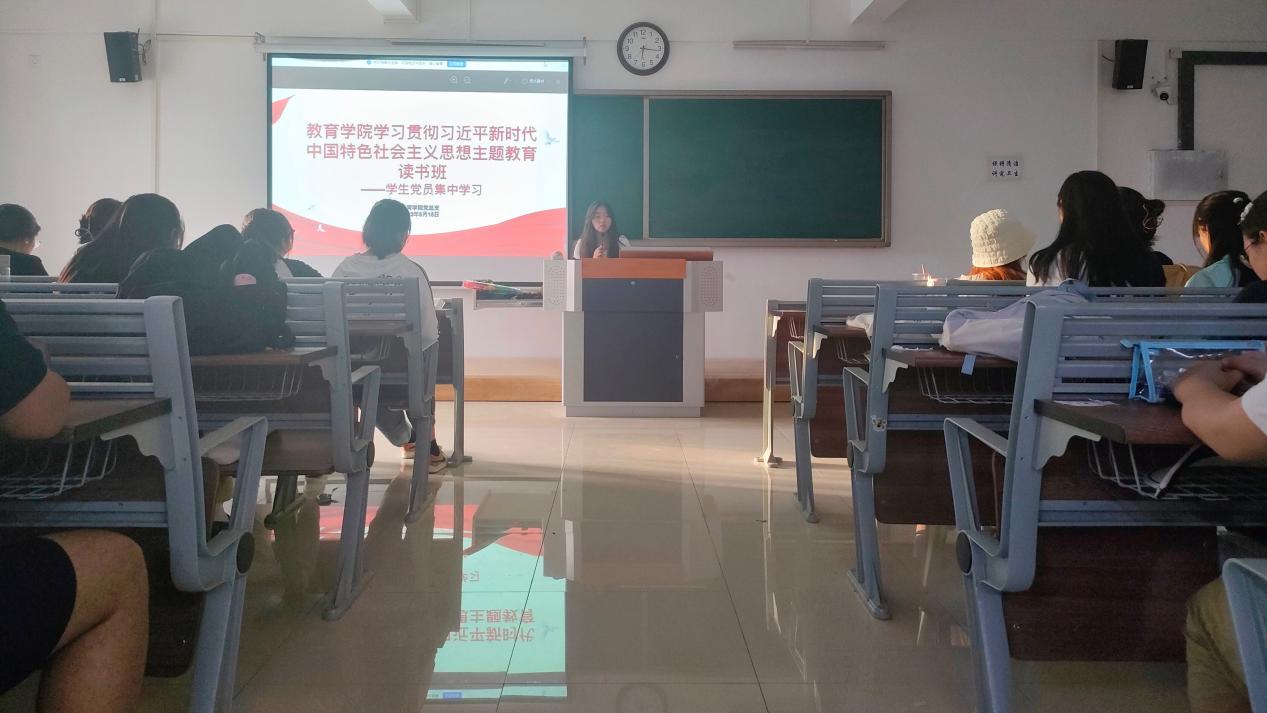 5月15日下午,jinnianhui今年会在1教420教室开展学习贯彻习近平新时代中国特色社会主义思想主题教育读书班——学生党员集中学习活动。活动由学院组织员陈慧慧同志主持,各学生党支部书记、学生党员和52名发展对象参加学习活动。