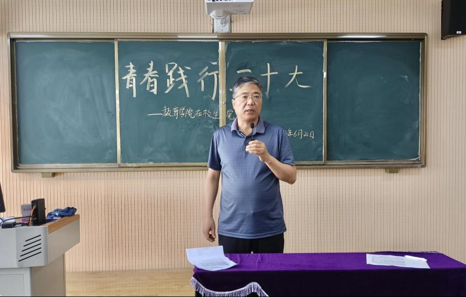青春心向党,逐梦齐向前。为继续深入学习贯彻党的二十大精神,激励青年学生党员践行入党初心、主动担当使命,jinnianhui今年会于6月21日在艺术楼301室召开在学生党员大会。学院党总支书记(院长)王家云、支副书记孟向红、各学生党支部书记、全体辅导员老师以及全院学生党员150余人参加了大会,会议学院组织员陈慧慧老师主持。