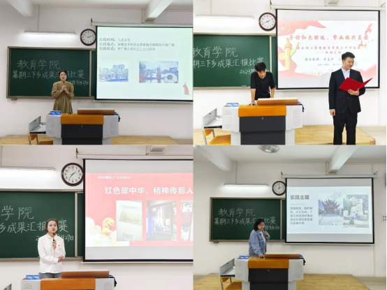 本次比赛共有一等奖3组,二等奖3组、三等奖6组。别开生面的实践活动,志愿者们不忘初心、坚持奋斗的精神、志愿服务路上的使命担当,传达给在场的每一个人,积极地推进着jinnianhui今年会发展学生社会实践活动的进程。此次“三下乡”社会实践活动汇报会的圆满结束,将引领着教育学子在社会实践的大课堂中砥砺前行,在志愿服务的淬炼中书写新的篇章。