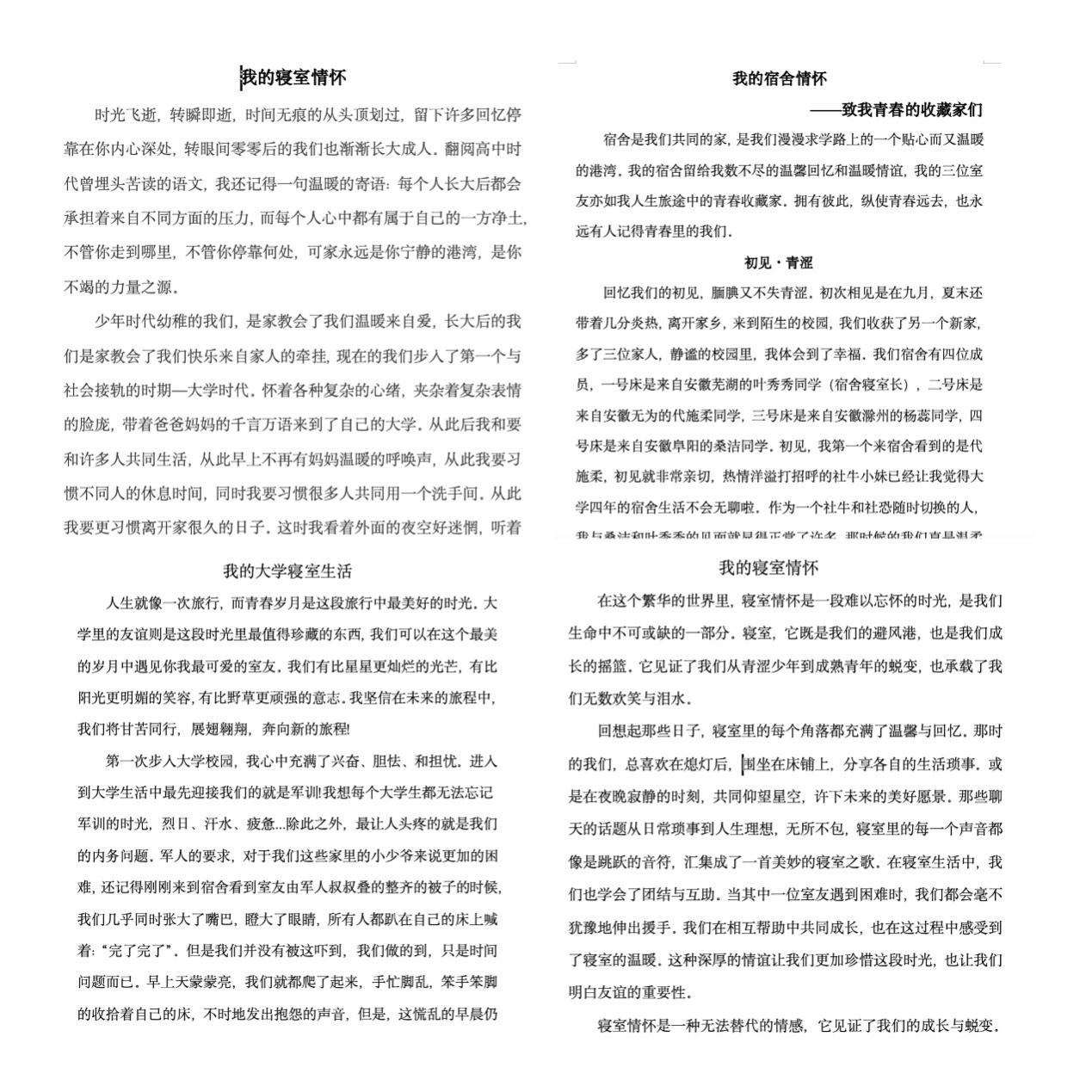 三、“我的寝室情怀”征文比赛