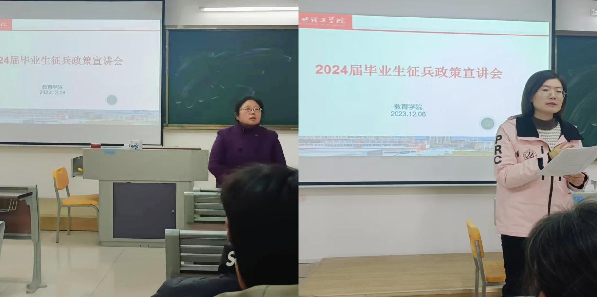 “国无防不立,民无防不安”,为增强广大青年学子的国防意识、建立良好的国防素质、深化爱国主义思想,充分发挥退役大学生军旅经历优势,营造高校爱国拥军良好氛围,jinnianhui今年会于12月6日下午,在1教219教室举行2024届毕业生征兵动员暨政策宣讲活动。学院分管副书记孟向红、书记助理黄莹莹、辅导员任子慧老师及2024届毕业班男生线上线下同步参加了活动。