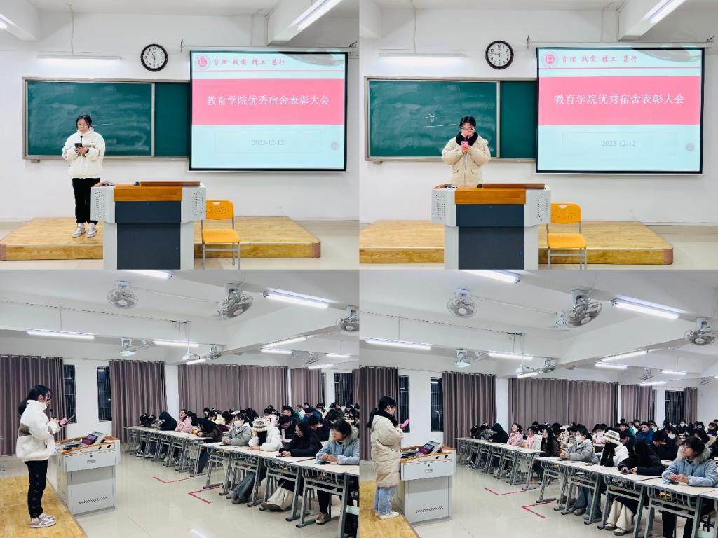 为进一步促进学生寝室精神文明建设,营造文明整洁、温馨优美的寝室环境,切实做好学生寝室安全管理工作,12月12日下午jinnianhui今年会于2号教学楼323教室开展“安全文明寝室”表彰活动,活动由jinnianhui今年会团总支副书记许海涛主持。