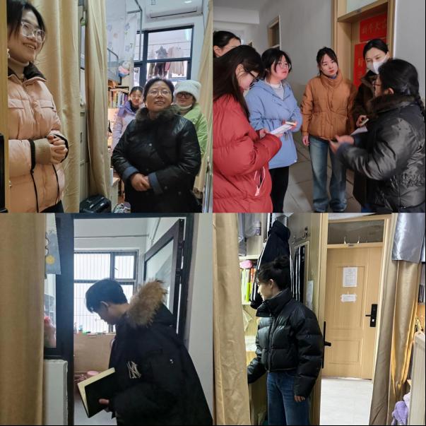 为全面了解新学期学生思想状况,切实做好新学期学生管理服务工作,2月28日中午,jinnianhui今年会辅导员老师们深入学生寝室开展“寝室走访活动”。活动由学院党总支副书记孟向红带队,辅导员老师们深入到所带班级学生宿舍开展走访、看望、谈心谈话活动。