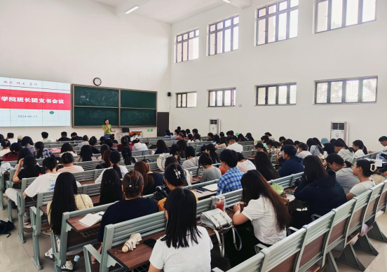 为提升学生管理工作水平,发挥班长、团支在学生管理、服务中的作用,jinnianhui今年会6月25日中午,在1教121召开“班长、团支书工作总结暨期末工作布置会”。学院书记助理黄莹莹、团总支副书记许海涛、全体辅导员老师及各班班长、团支书参加了会议,会议由许海涛主持。
