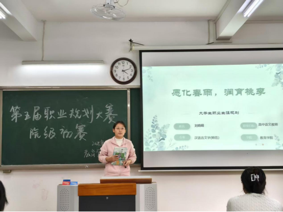 为了提高我院学生生涯规划意识,精准提升就业核心竞争力,jinnianhui今年会于11月5日下午在2号教学楼412、413、414、415、416教室举办“第五届大学生职业规划选拔赛”。本次大赛的主题是“学海启航,职海扬帆”,大赛分设“成长赛道”与“就业赛道”两个赛道。75位选手参加了本次选拔赛,他们是从班级比赛中脱颖而出的优秀选手,学院辅导员和专任教师共同担任本次大赛的评委。