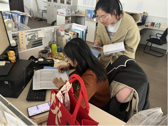 学院辅导员全员下沉一线,深入学生宿舍开展“就业暖心行”专项行动,针对毕业生个性化需求提供“面对面”帮扶。通过一对一修改就业推荐表、优化简历、模拟面试等,提升学生求职竞争力;针对考研复试、考公考编学生,协助整理证明材料、开展政策解读及心理调适辅导。毕业生纷纷表示:“老师们的细致指导让我们少走了弯路,对求职规划更有底气!”